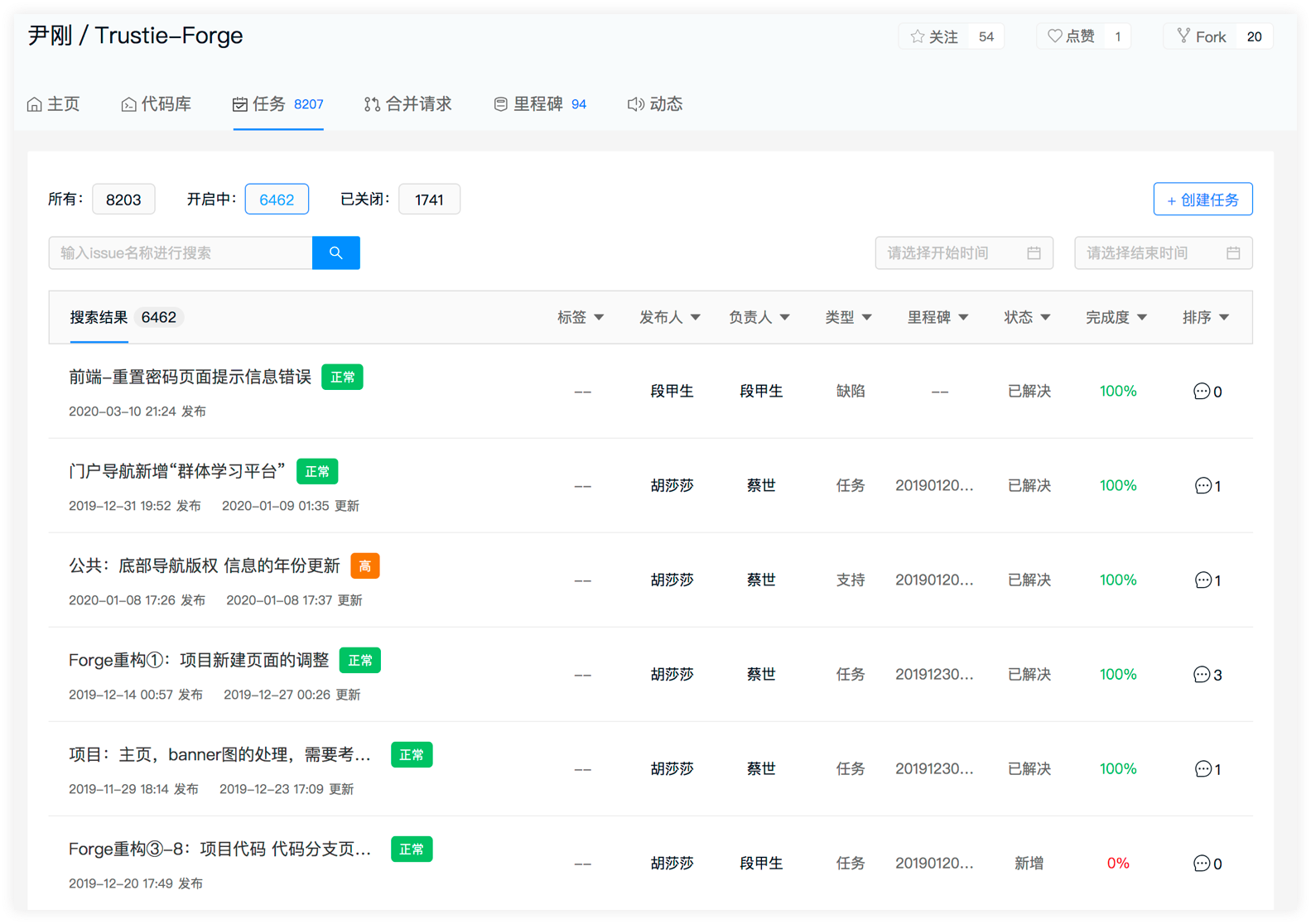 Trustie (确实)是一个以大众化协同开发、开放式资源共享、持续性可信评估为核心机理,面向高校创新实践的在线协作平台。