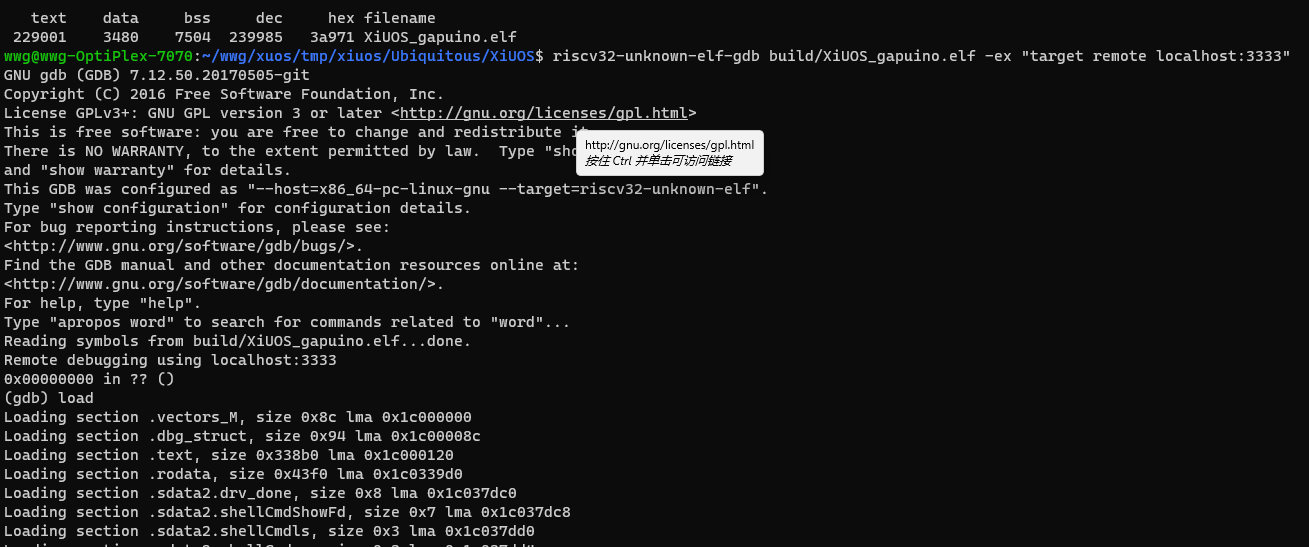 riscv32-unknown-elf-gdb build/XiZi-gapuino.elf -ex "target remote localhost:3333"