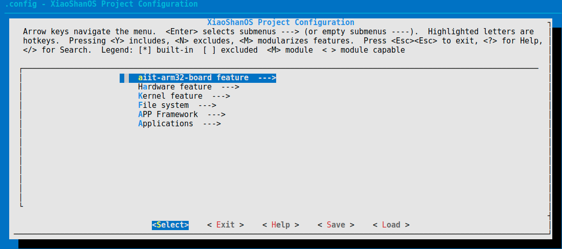 make BOARD=aiit-arm32-board menuconfig
