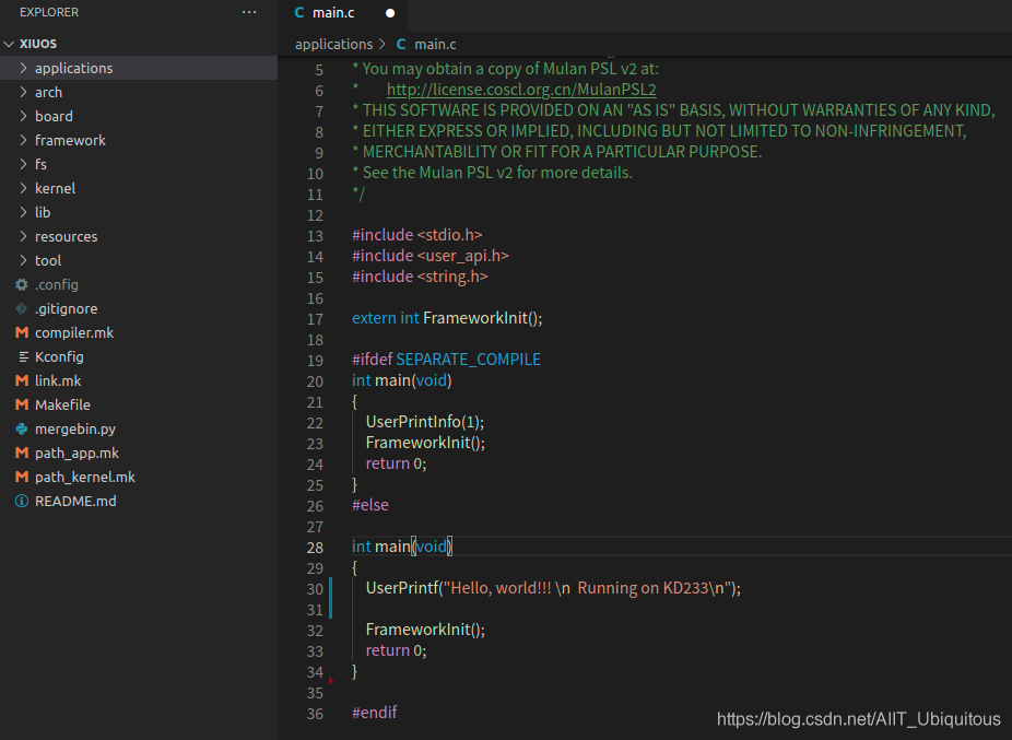 2、打开XiZi内核源码文件包可以看到以下目录: