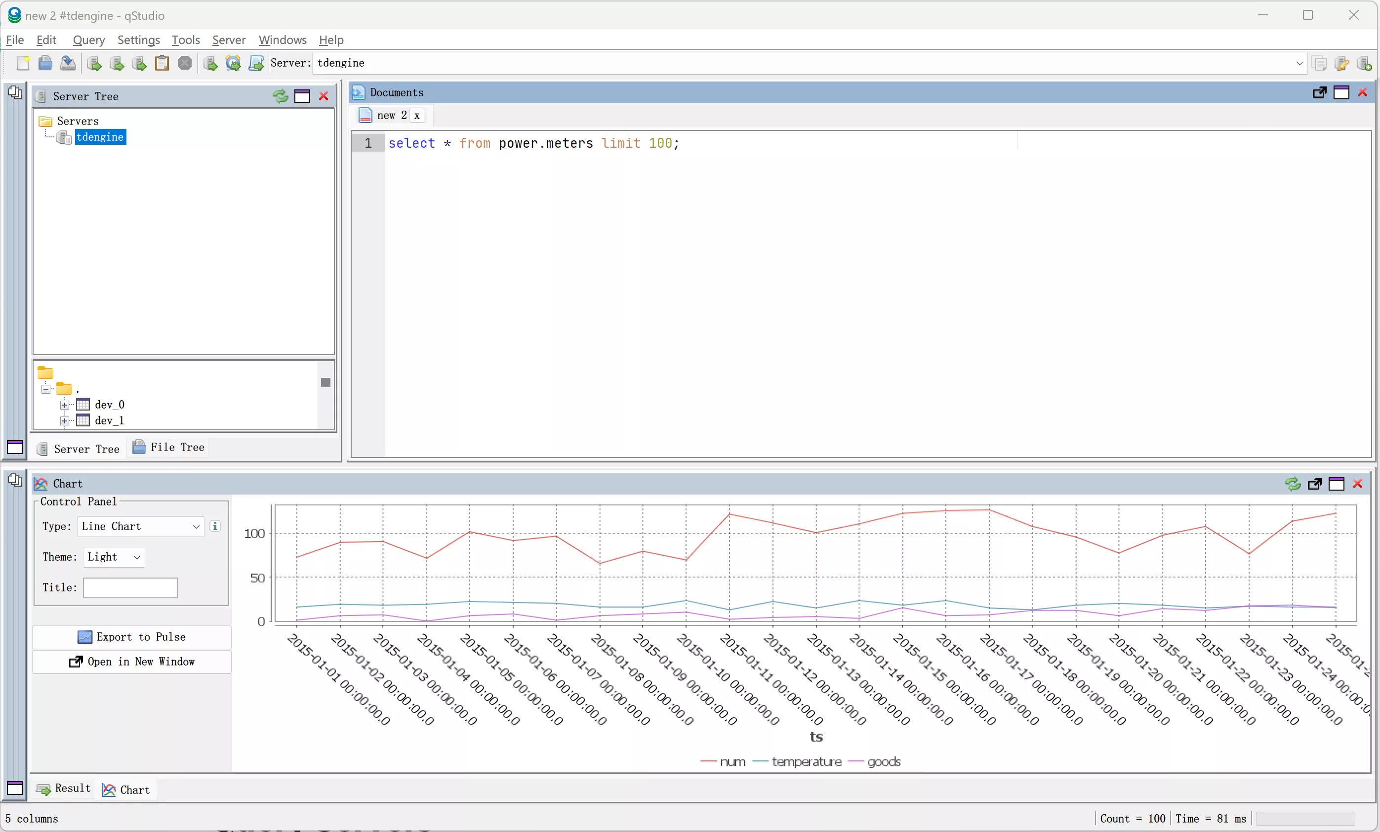 qStudio 是一款免费的多平台 SQL 数据分析工具,可以轻松浏览数据库中的表、变量、函数和配置设置。最新版本 qStudio 内嵌支持 TDengine。